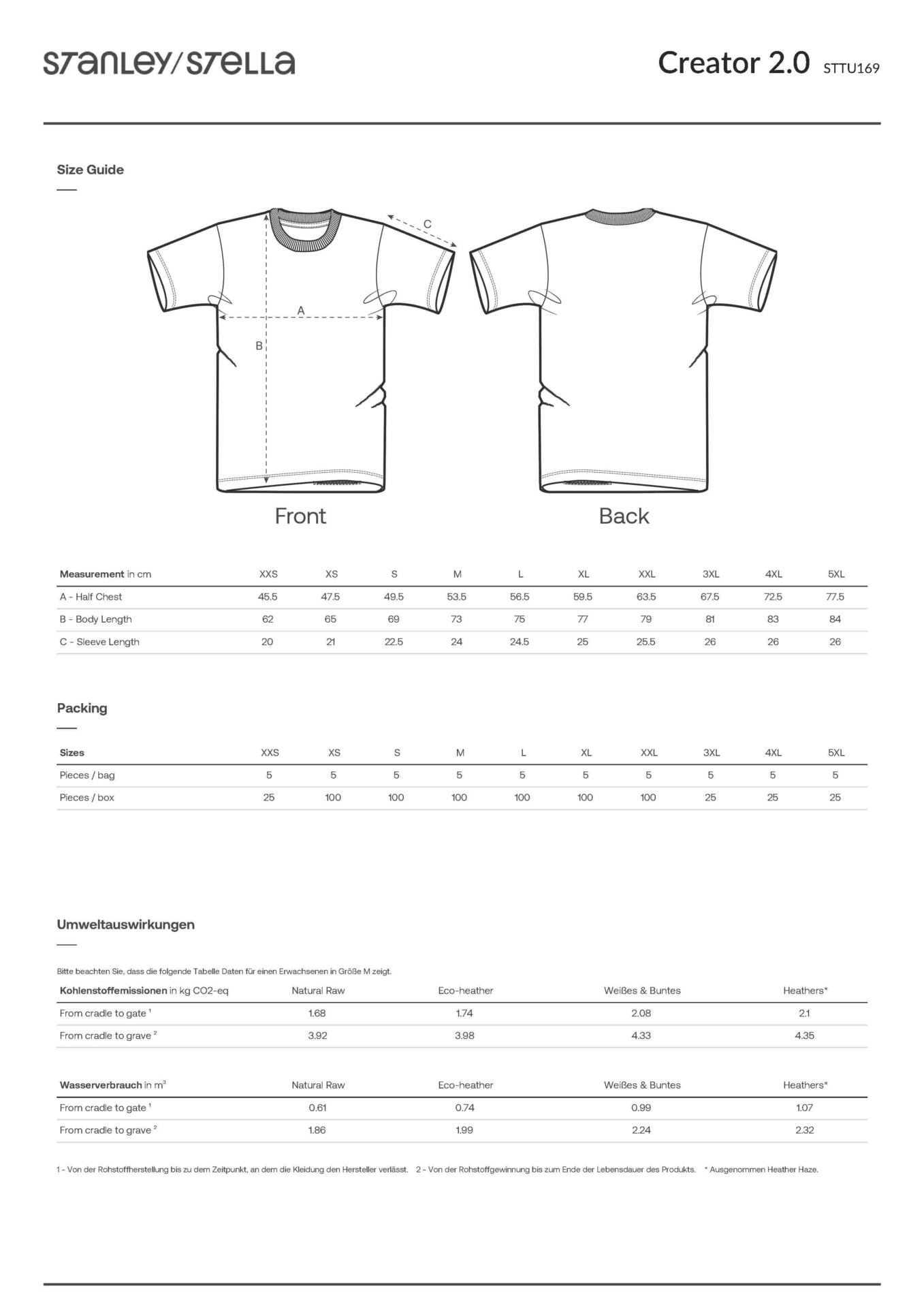 T-Shirt: Stanley & Stella Creator 2.0 (100% Bio-Baumwolle GOTS Certified by Control Union CU819434; Oeko Tex Standard 100, Peta approved Vegan, Fair Wear)